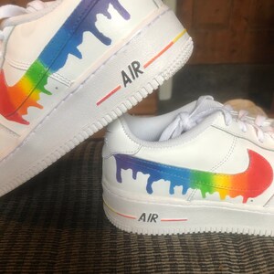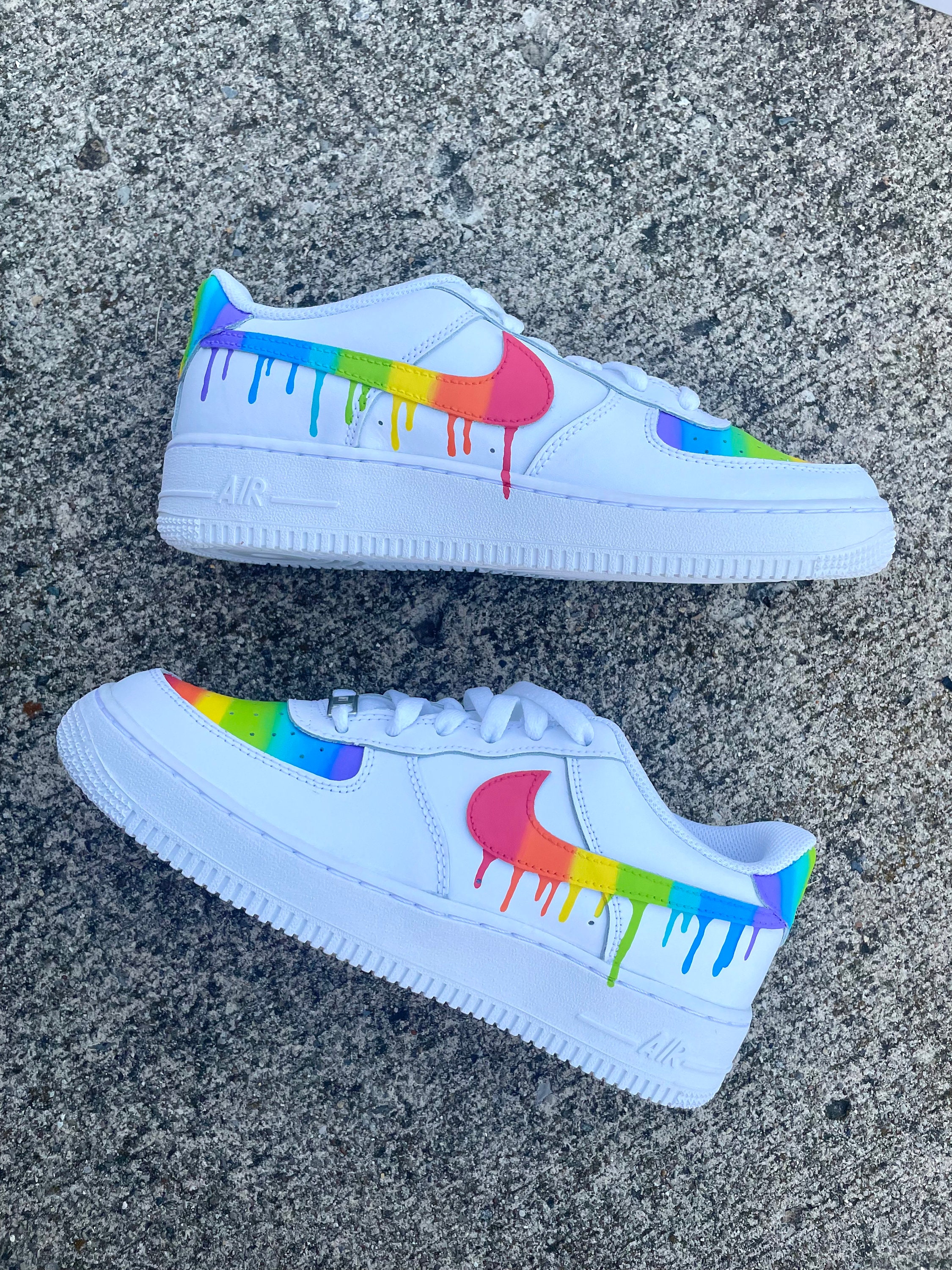 Rainbow Dripping Paint Swoosh Custom Nike Air Force 1 Sneakers Etsy